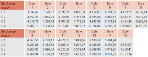 Besoldungstabelle C – ab 01.02.2020 (Monatsbeträge in Euro)