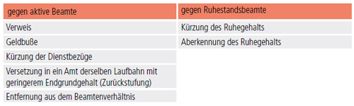 Zu ergänzen ist, dass bei „Beamten auf Probe“ und „Beamten auf Widerruf“ nur die beiden Disziplinarmaßnahmen Verweis und Geldbuße in Erwägung gezogen werden können, weil sie ansonsten aus dem Dienst zu entfernen wären.