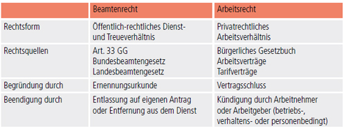 Unterschiede zwischen Beamtenrecht und Arbeitsrecht